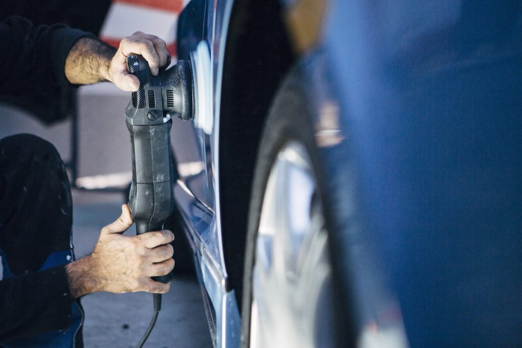 上塗り塗装後はしっかりと乾燥させ、磨き作業に移ります。ここではコンパウンドやポリッシャーを使用し、塗装面を整えていきます。